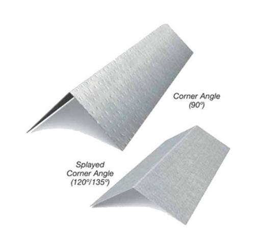 Steel angles are used to connect, reinforce or secure metal framing in various drywall applications. Available in many different sizes and gauges, 90 degree or 120 degree galvanized angle is used in framing applications including lapped framing conditions, soffit framing, floor and ceiling runner, chase wall construction and laminated gypsum drywall partitions.
