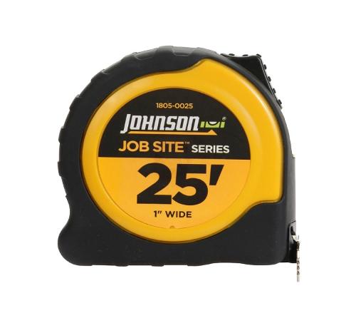 Durable, easy to read and easy to use, Johnson's Job Site™ tape measure will guide you quickly and accurately through your next measurement project. This 25' tape measure features a wide 1" blade for maximum extension and stability, and is printed on both sides for easy viewing. The Tiger Claw™ 4-rivet blade hook also keeps the blade from slipping during use. For durability, the Blade-Gard™ nylon-coated blade resists abrasion while the ergonomic co-molded rubberized case is impact resistant.