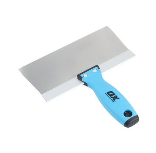 OX Tools Stainless Steel Drywall Taping Knife. Premium, flexible stainless steel blade. Built-in hammer end. OX Grip handle. Blade and handle riveted together. For use in drywall joint taping, finishing, and patching.