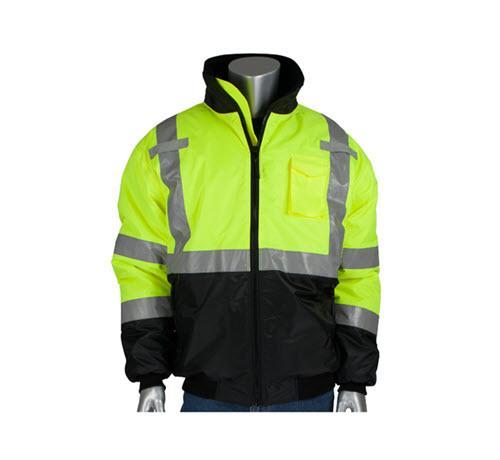 PIP ANSI Type R Class 3 Value Black Bottom Bomber Jacket / Hi-Vis Yellow - Small